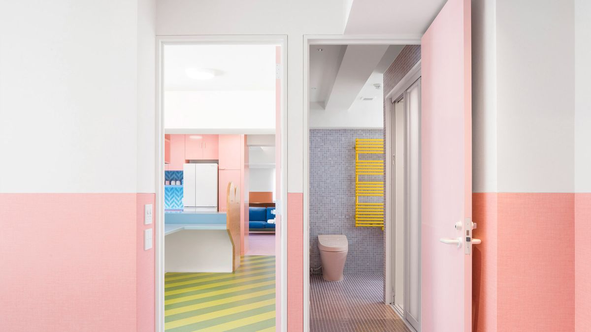 這座位於東京的公寓,是由設計師Adam Nathaniel Furman以甜蜜色調為基底,設計出如泡泡糖般夢幻的粉色廚房,與西瓜外型的綠色條紋地板。這座公寓的前身,像是一處散發陣陣恐怖氣息的幽閉空間,內部格局由數間狹窄的房間,圍繞著一條狹長走廊展開。