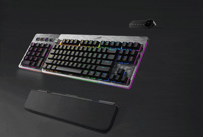 主要鍵盤就是大家都很熟悉的日常打字區塊,配有 RGB 背光。數字鍵盤模組的上面還配置有 4 個可自訂的彩色顯示快捷按鈕,一按就能開啟你喜歡或最常用的服務與功能,而數字按鍵可依照你的習慣固定於左邊或右邊。