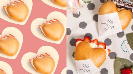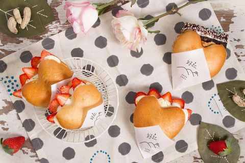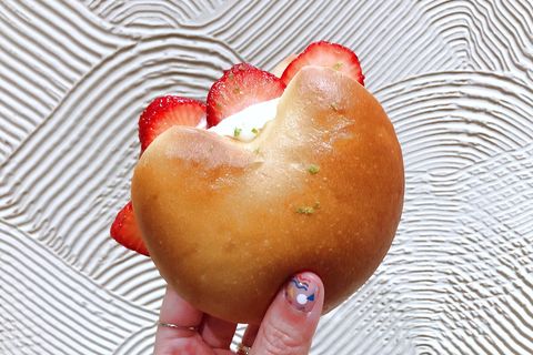 一整顆愛心貝果中吃的到草莓酸甜感!