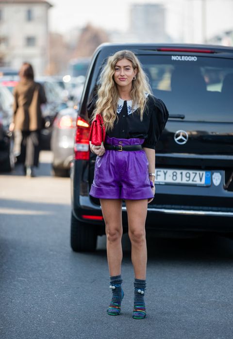 純粹的荷葉領襯衫其實就能穿出簡單,卻有華麗細節的搭配,像丹麥造型師 Emili Sindlev 以泡泡袖加上荷葉領的襯衫,很適合窄身又嬌小的身形,再搭上高腰皮短褲及高跟鞋還能有長高的效果呢!