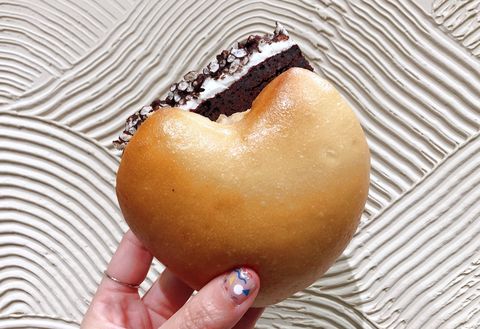 一整顆愛心貝果中吃的到草莓酸甜感!