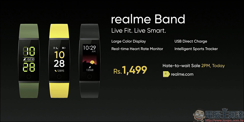realme Band 智慧手環的建議售價為 1,499 印度盧比(約合新台幣 626 元):