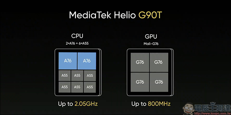 硬體規格方面, realme 6 搭載聯發科的 MediaTek Helio G90T 處理器: