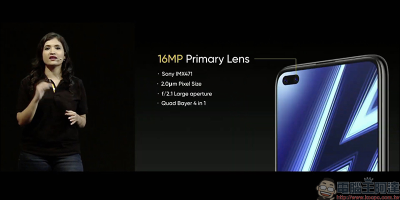 realme 6 Pro 則配備雙前鏡頭自拍相機,首先是 1,600 萬像素標準鏡頭,採用 SONY IMX471 感光元件: