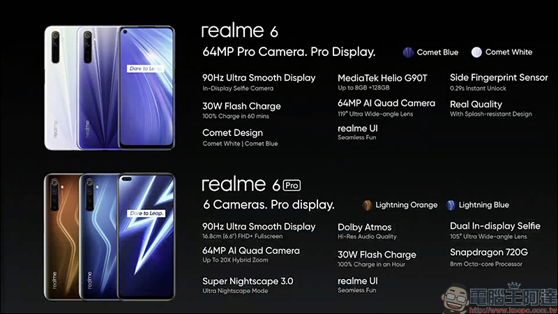總結 realme 6 和 realme 6 Pro 的規格重點: