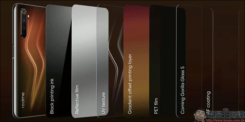 為了呈現出閃電般的紋理,在 realme 6 Pro 背蓋以多層鍍膜處理: