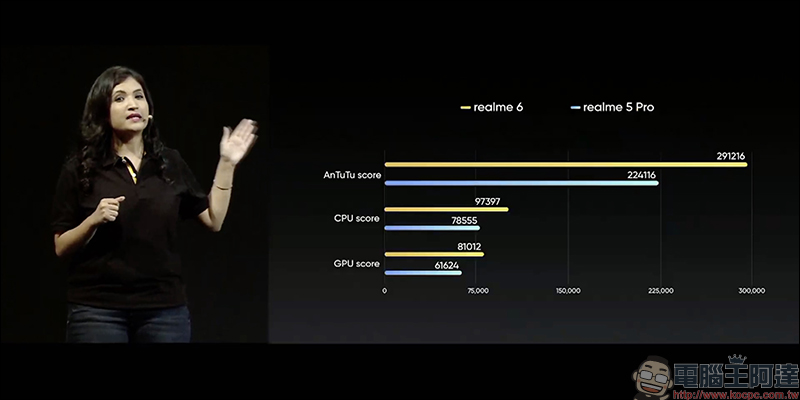 官方公布的 realme 6 安兔兔跑分為 291,216 分,比起 realme 5 Pro 有顯著提升: