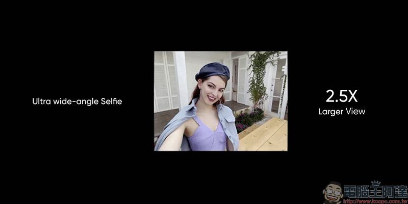 realme 6 Pro 前相機加入超廣角鏡頭後,能拍攝 2.5 倍廣度的視野: