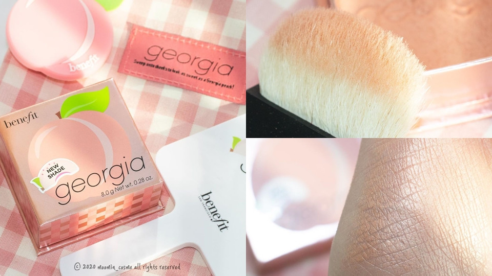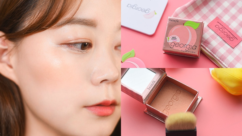 第一款就是金多美在畫報中擦的款式,韓國benefit在3月推出的腮紅新色#Georgia,是一款杏桃色調、搭配細緻的金閃粉的腮紅,溫暖的色調適合亞洲女孩偏黃的膚色,可以讓膚色更透明!
