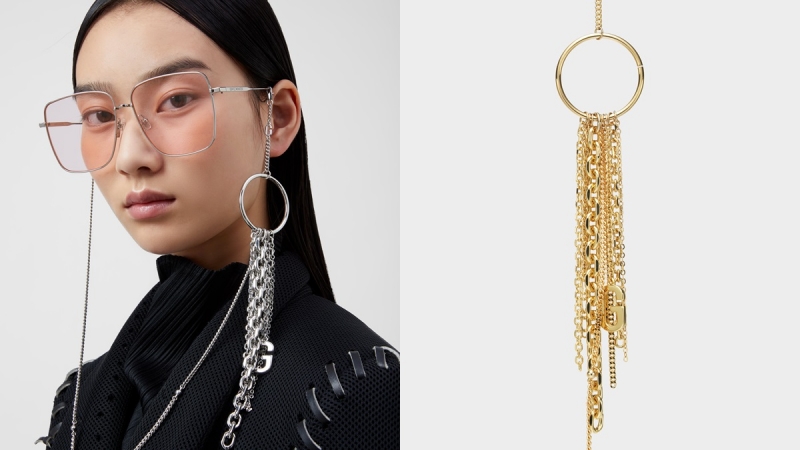 由兩種不同形態的鏈條組合而成,融合了品牌標誌性元素「G」作為裝飾,呈現優雅又不失精緻的細節設計。