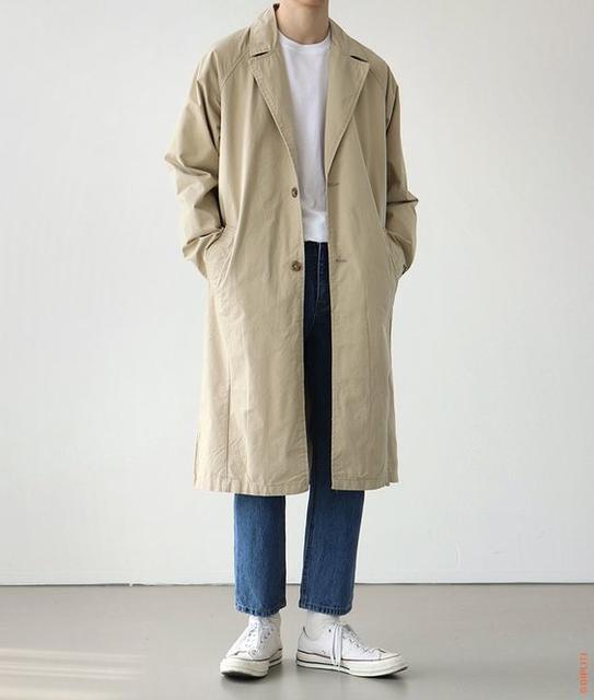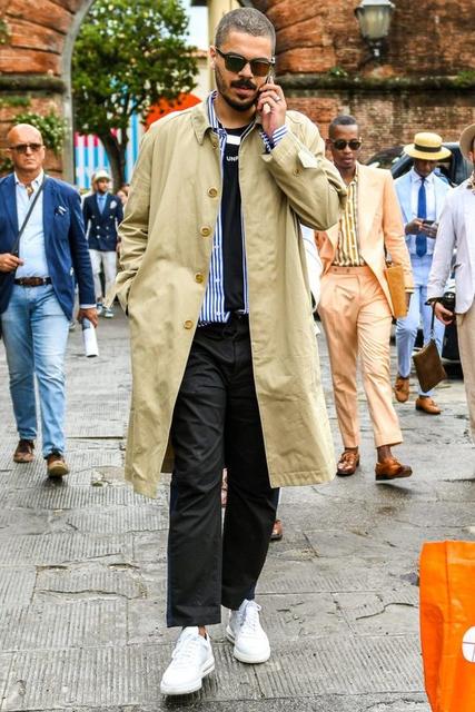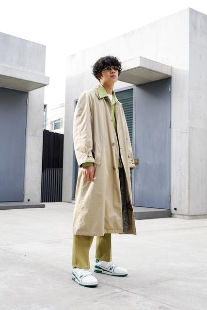 ▲ 將素TEE、襯衫、卡其色風衣混合連結街頭個性 Photo Source