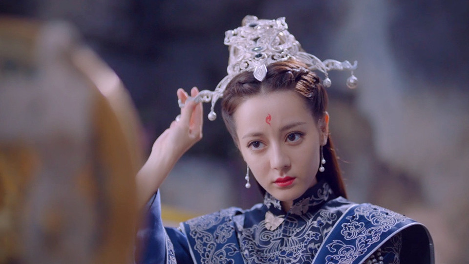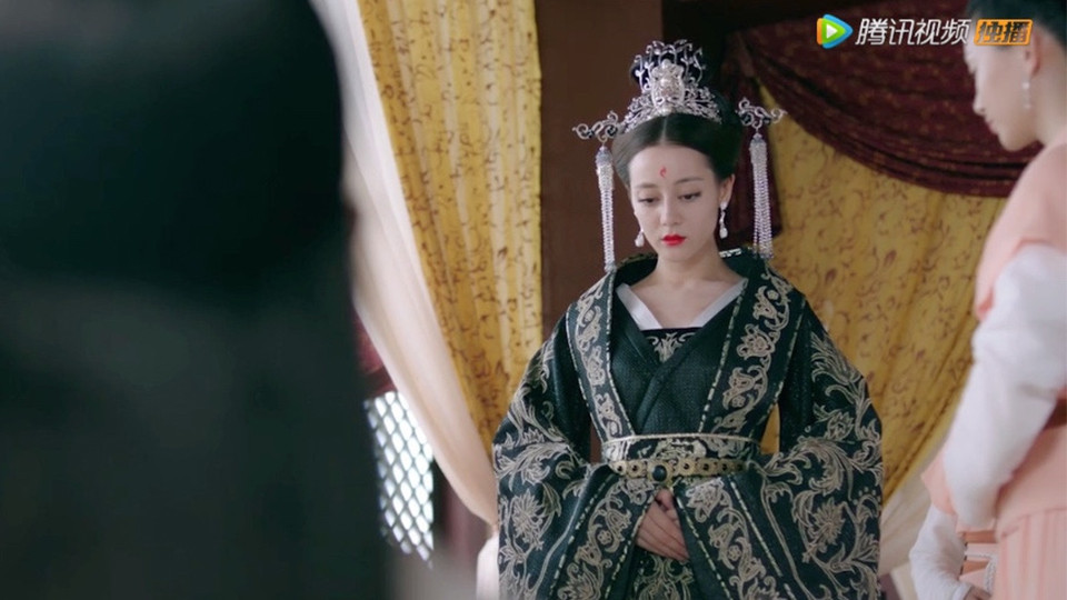 熱巴在劇中第一次穿上嫁衣就是在凡間,全黑的衣服繡上華麗的金色刺繡,這是小九從九美人登上后位的造型,可惜最後小九逃婚了,沒能真的穿上,這套也只出現幾個畫面而已。