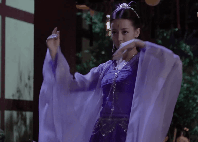 九美人還有另一套純紫色的造型也超美!她穿著紫衣跳舞,魅惑力十足,衣服上還有很多亮晶晶的綴飾,帶點異域風情。這套好適合熱巴喔!