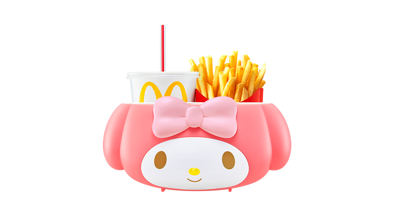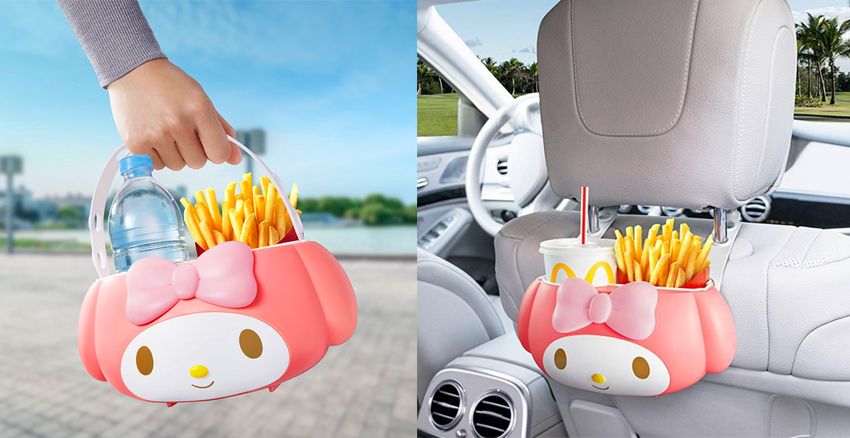 另一款令人尖叫的小物則是麥當勞和三麗鷗的聯名,這次推出「Melody飲品薯條方便筒」,可以放進可樂和薯條,拎在手上逛街是不是很時尚?重點是,這個小籃子還能放在車子後座的椅背上喔,這樣子小朋友就能乖乖坐車了!