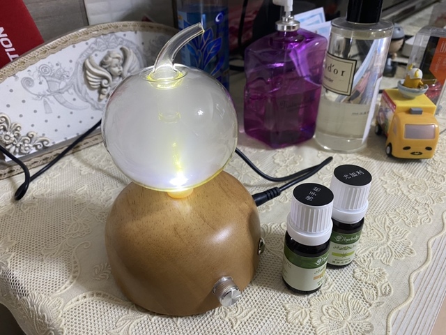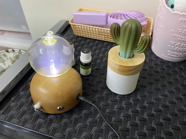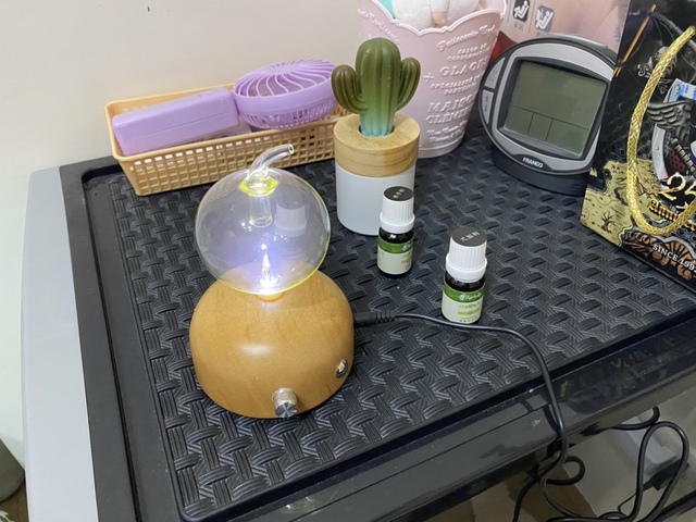 擺放於置物櫃上,大約2-3坪大的臥房,一開機就明顯感受到柑橘香味瀰漫著