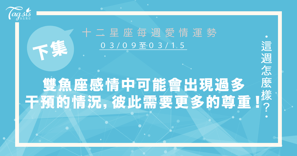 - 【03/09-03/15】十二星座每週愛情運勢 (上集) ~白羊座想開始一段新感情,但總覺得遇到的不是自己喜歡的類型!