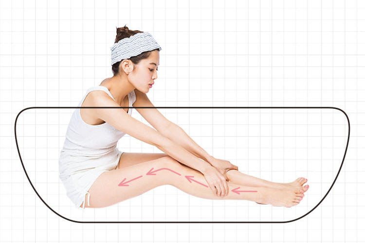 把手握成拳頭,再向肚子下方推進,讓皮膚和肌肉中的廢物流向腿部。