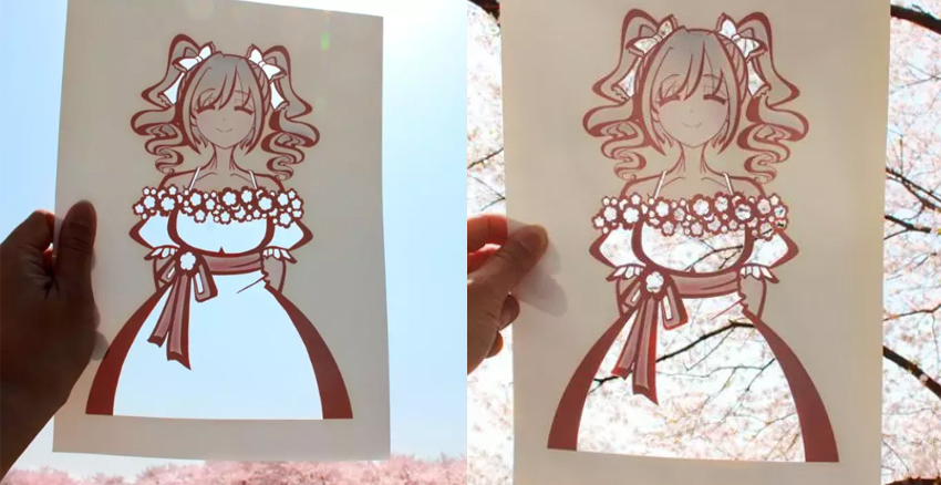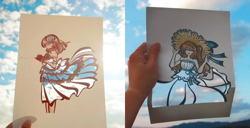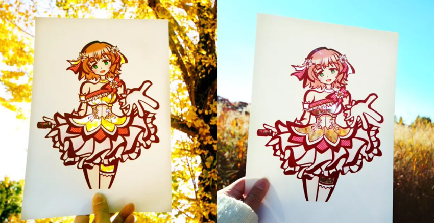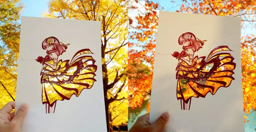 日本「切り絵」的紙刻藝術,等同中國的剪紙,先用刻刀在紙上造型,接著在空白處塗上顏色。一般的「切り絵」都是以黑白兩色為主,但日本一位小姐姐的「切り絵」作品,卻讓人一眼難忘,因為她把大自然當成她的色筆啦。