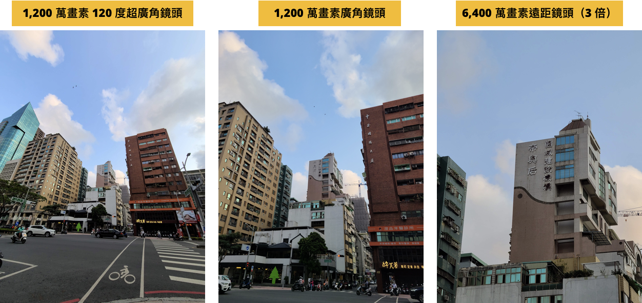 6,400 萬畫素的遠距鏡頭拍攝大樓建築非常、超級、無敵清楚,效果很好,廣角鏡頭能拍攝的範圍也較遠,天空色調很飽和、雲朵也很清晰。