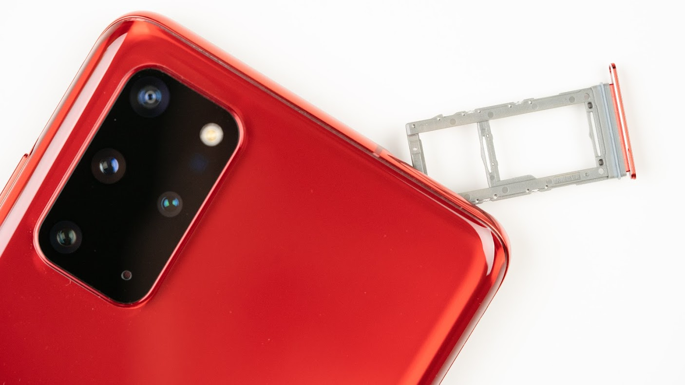 韓國版本的 Galaxy S20+ 5G 為單卡設計,可以另外擴充 1TB 的 microSD 記憶卡。SIM 卡這部分和台灣比較不同,台灣版本為 nano-SIM 和 eSIM 雙卡雙待的設計,一樣可以選擇擴充記憶卡。