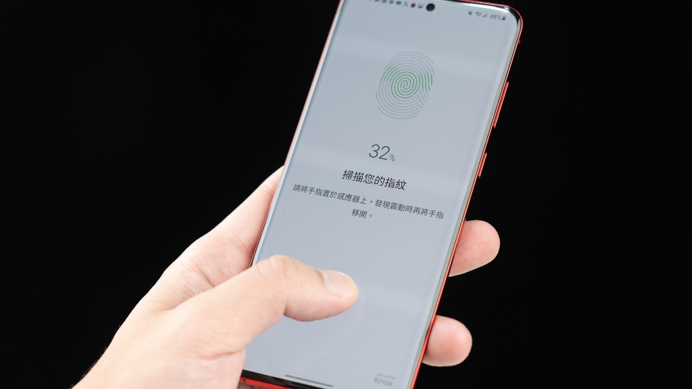 Galaxy S20+ 5G 採用最新一代超音波指紋辨識,和去年的 Galaxy Note10 和 Galaxy S10 相比,指紋辨識的速度從採集時就非常有感!實際上使用時可以說快了一倍,原本按壓上去要遲疑 0.5 秒左右,這次幾乎秒解鎖。光學指紋辨識最擔心手濕漉漉感測失靈,但超音波就算手指頭濕濕的也非常迅速!