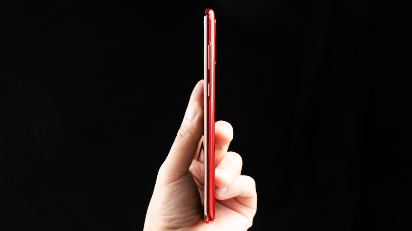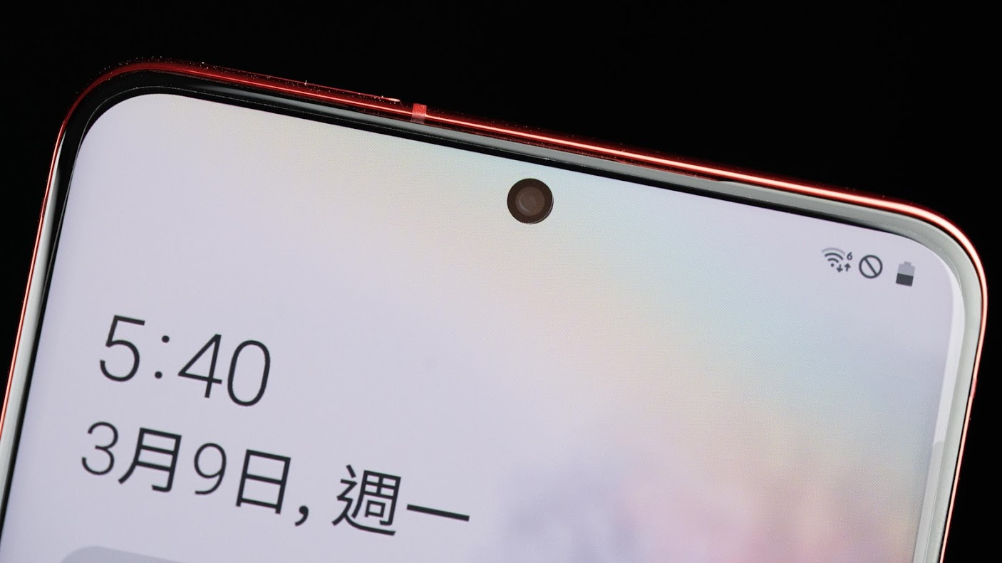 正面也同樣使用曲面玻璃,這個曲面玻璃沒有很「曲」,跟最近崛起的瀑布螢幕比起來,算是在視覺上加分,但握持時完全不會誤觸,是我很喜歡的一個曲面角度。搭配在正中間開孔的 Infinity-O 前鏡頭設計,還有包含下巴都越來越窄的邊框,20:9 的螢幕比例讓 Galaxy S20+ 5G 的尺寸看起來和握起來都更細長。