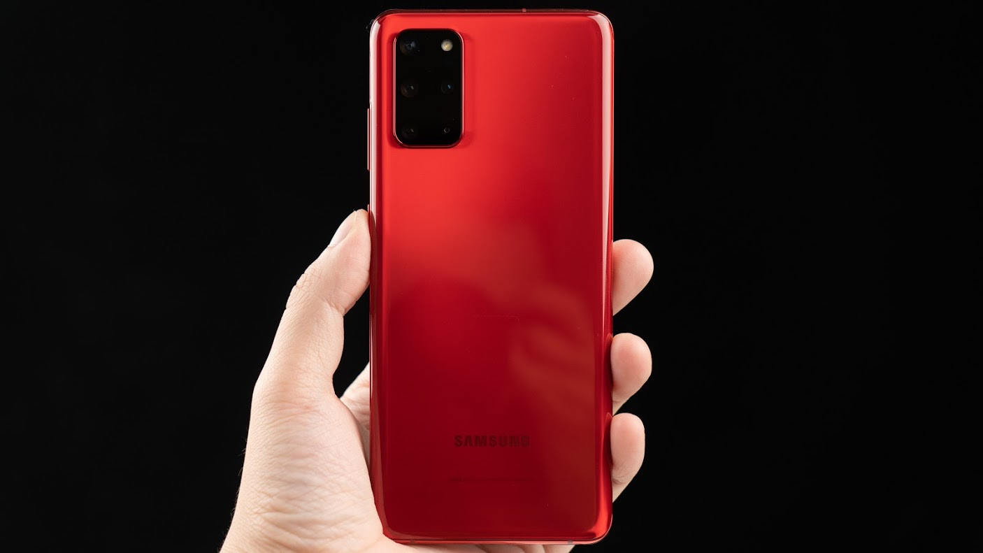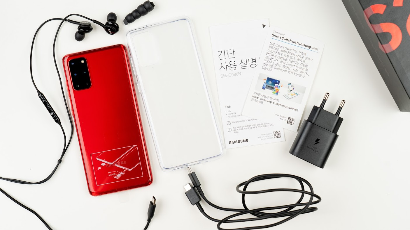 ▲紅色限定版的 Galaxy S20+ 5G 外盒設計為黑底紅字。