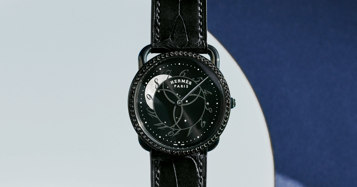 在眾多經典的愛馬仕錶款中,我們不能不提到於1978年推出的「Arceau」系列!圓圓的錶殼,搭配著矩形的馬鐙錶耳,是該錶款最鮮明的設計,其低調簡約的氣質,也總能默默收服愛錶藏家們的心。而近期推出的嶄新系列,Henri重新以愛馬仕的觀點再詮釋“時光”;黑色錶圈裝飾著黑色尖晶石,閃耀出深邃的暗夜之光;錶盤上掛著一弓珠光弦月,上面的斜體阿拉伯數字不疾不徐地迴旋而過,搭配精製的短吻鱷魚皮錶帶,戴上它,舉手投足之間,你都是眾人眼光的焦點!