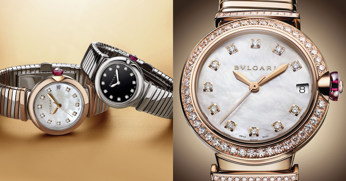 一個鍊節設計能夠傳承70年以上,靠的絕對不是行銷或是運氣!這一經典符號不僅讓寶格麗打造出眾多經典珠寶及腕錶珍品,更成就了裝飾藝術上的獨特地位。以「Lvcea Tubogas」命名,就是要鮮明地點出此系列的設計精髓,蜿蜒有致的「Tubogas」鍊節錶帶,與圓潤的錶盤形成鮮明對比;錶冠上的蛋面切割粉紅寶石及鑽石的搶眼裝飾,則為整只錶注入活力節奏。其雋永而耐看的錶型,不僅符合當代女性的日常佩戴習慣,也凸顯品牌在裝飾藝術上的崇高地位。
