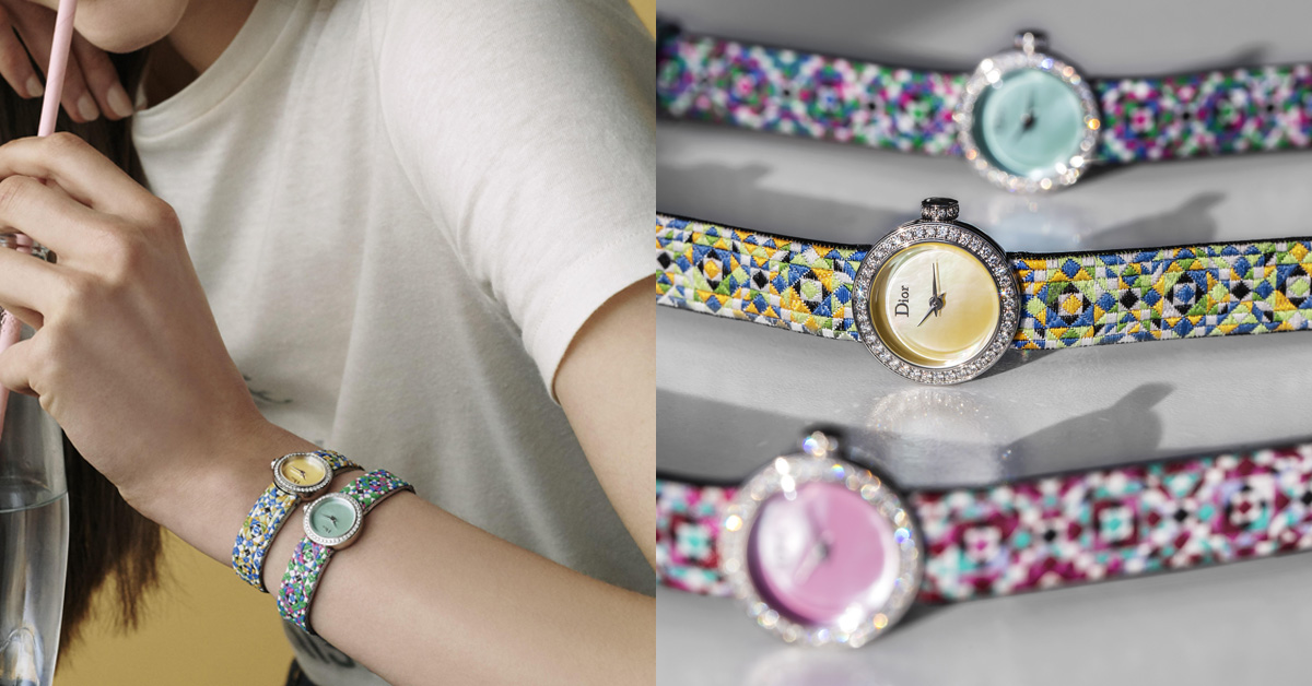 源於男錶女戴的浪漫情懷,作為迪奧腕錶家族的經典象徵「La D de Dior」系列,從原先中性的38mm錶面,逐步發展成如今的19mm迷你錶面,甚至在錶帶上也不斷推陳出新,有低調奢華的黑色絲絹、創意的螢光色漆亮皮、媲美緞帶質感的米蘭織紋錶帶;再到最近,入職滿21年的珠寶腕錶創意總監Victoire de Castellane將品牌設計DNA–藤格紋(Cannage)以繽紛色彩的馬賽克編織呈現,致敬迪奧精神。