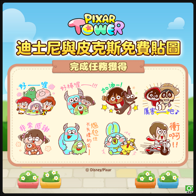 LINE 免費活動貼圖:歡慶《LINE: Pixar Tower》手遊上線,迪士尼與皮克斯免費貼圖開放下載!