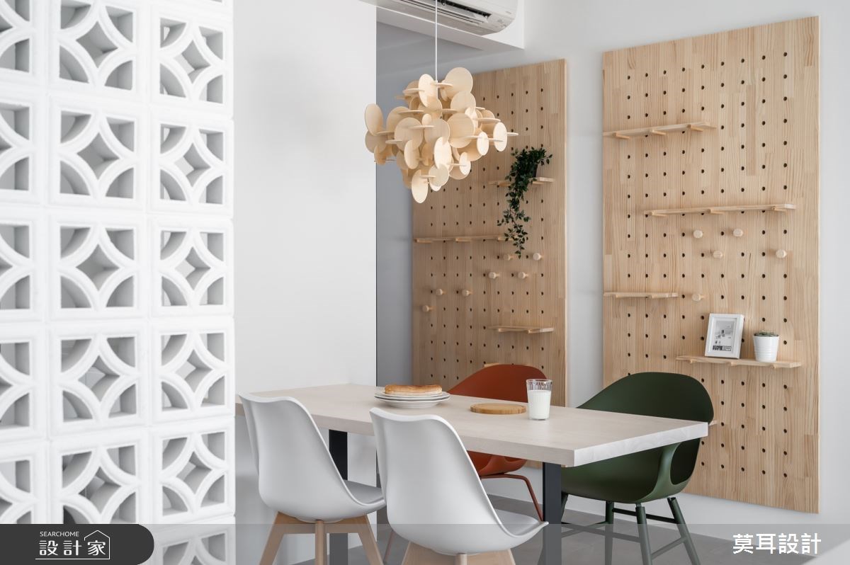 餐廳是邀約親友一同共餐的溫馨場域,所以這區域的洞洞板通常不會收納過於大型、雜亂的物品,而是多用植栽點綴,呈現清新舒服的用餐環境。此外,餐廳洞洞板也可以收納一些馬克杯、手沖壺等,營造咖啡廳般的愜意氛圍,讓餐桌兼具工作桌功能,不管是跟朋友喝下午茶,或是使用電腦工作,都是種舒服的享受。