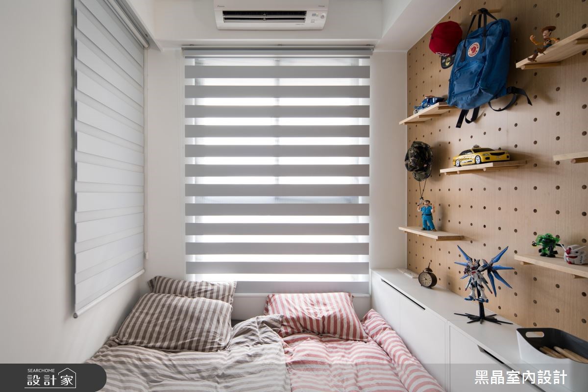 兒童房的洞洞板尺寸可大可小,建議保持較大的彈性為佳,因為孩子在成長的過程中可能想法會有所改變,所以洞洞板的佈置會跟隨孩子的不同階段去做調整,從模型車、樂高到書包、雜誌,再到手錶、飾品,洞洞板就像是一片生活的記錄牆,顯現時間的匆匆流逝與留下的美好回憶。