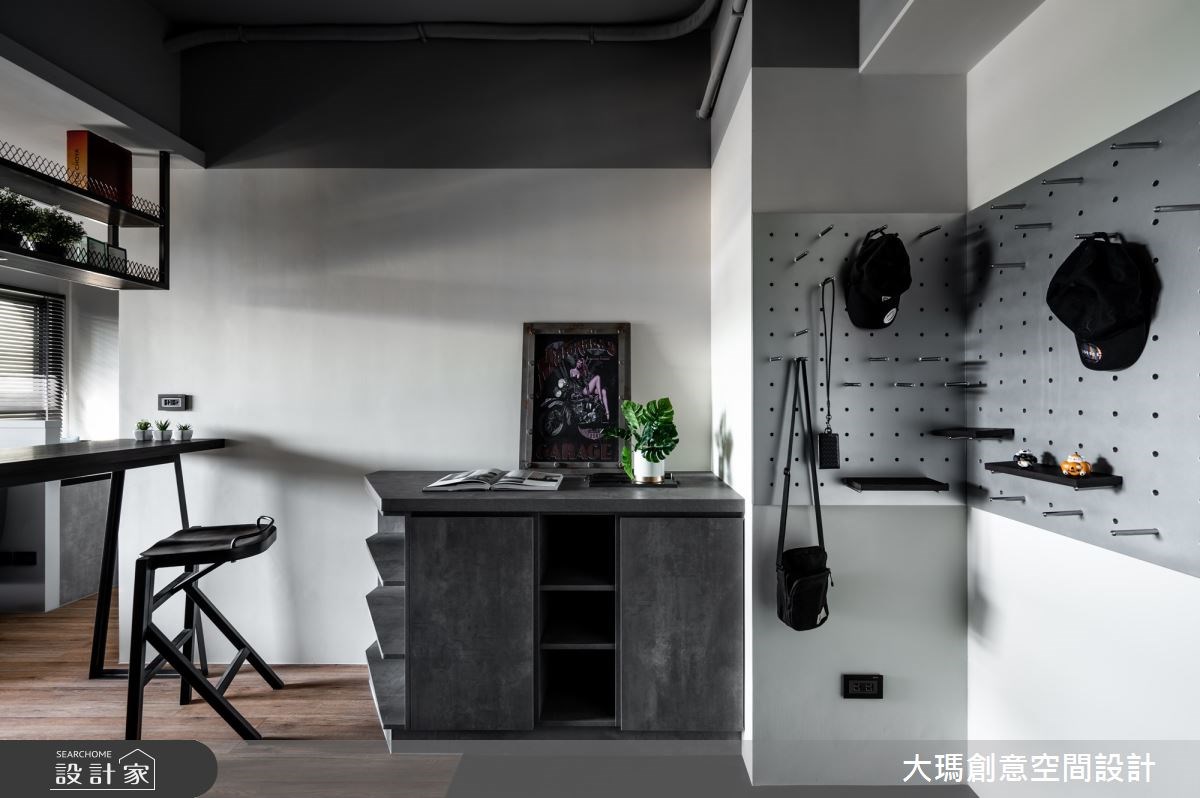 入門處擺放一塊洞洞板,其實相當方便,面積小的洞洞板可以吊掛帽子、鑰匙等小配件,面積比較大的話,則能當作一日衣櫃來使用,吊掛尚未要洗的外套、包包等,可以讓衣物保持通風,不會積壓在一起,也比較衛生,同時能夠創造出擁有豐富層次的居家端景,讓人回到家就有好心情。