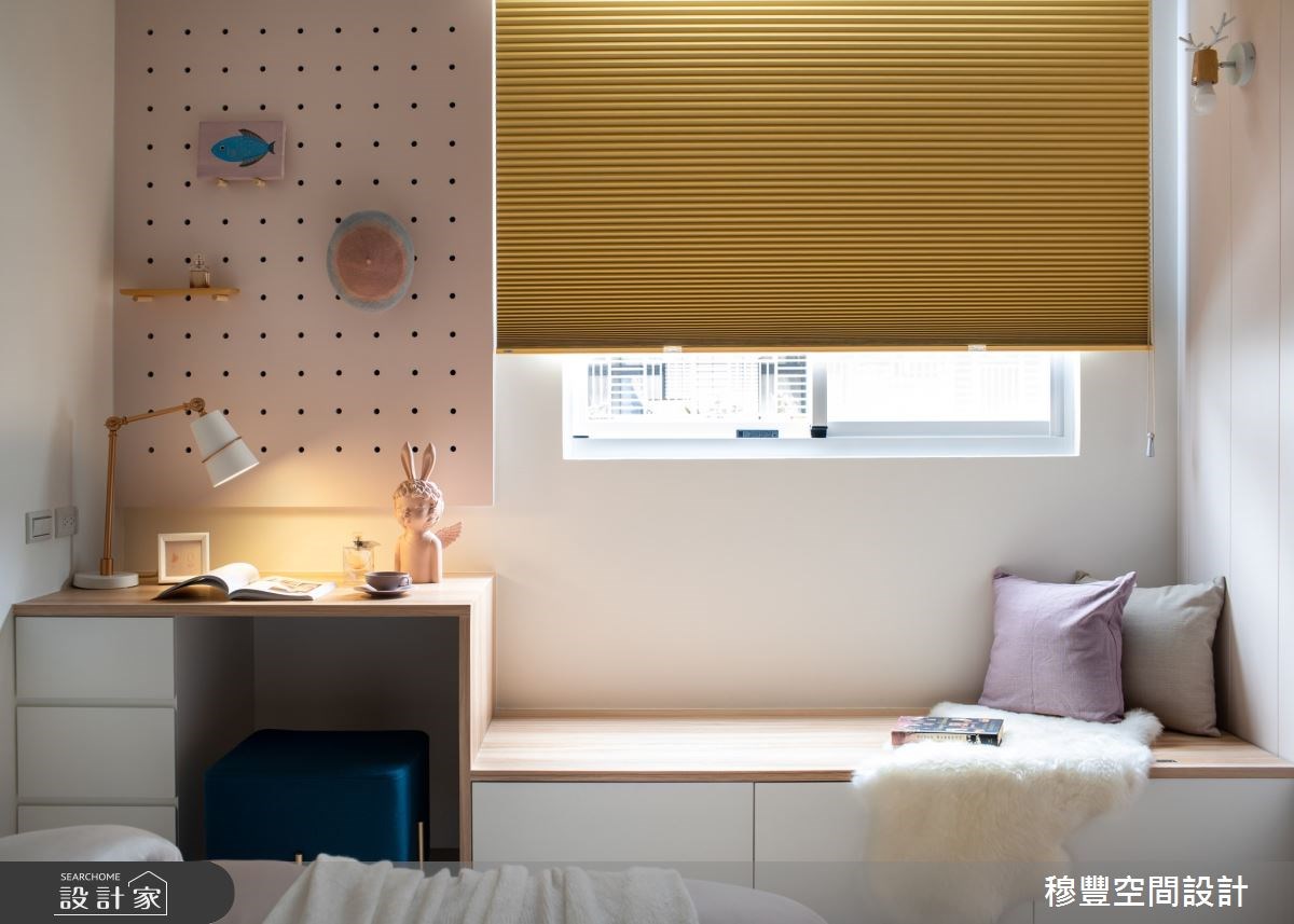 書房是最適合設置洞洞板的空間格局,一方面可以讓書籍陳列更有變化,另一方面能夠塑造文青質感,成為公領域亮眼的一隅。如果空間許可的話,洞洞板也能作為連結主臥的門片,拉起門來可以隱藏私領域入口於書牆中,打開時又能夠帶來充沛的採光與通風,隨時依照當下的情境作切換。