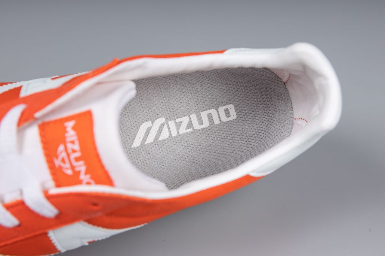 這一系列在剛推出時就以他特色的復古風格與服飾品牌如 Margaret Howell 合作聯名炒熱話題,如今也迎上了近年搭配返樸歸真的流行走向,2020年初我們就見到這一波多款 M-LINE 產品上市,呼應了鞋款本身的運動風格,這一波的 MIZUNO M-LINE MR1 鞋款之中,就有這個相當亮眼的橘色出現。