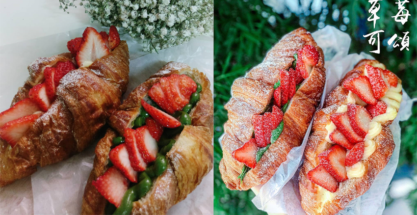 這間店的可頌在IG真的超紅,《網莓美莓》外皮酥脆鬆軟,中間添加了卡士達(也有抹茶醬)和草莓,吃下去的瞬間真的超甜蜜,雖然位在台南,但是看這照片就能感覺出有多美味,還不趕快衝府城吃一波?