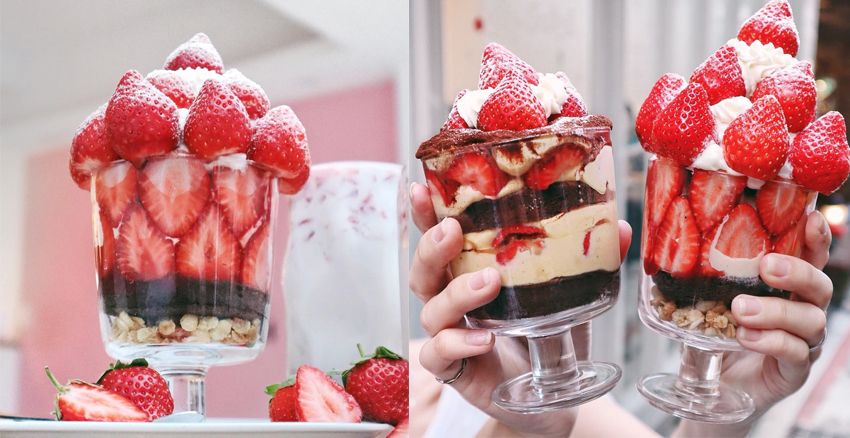 位在信義區的Sweet tooth,販賣超多跟草莓有關的甜品,其中最令網友喜愛的就是一天只有限量12杯的「豪華草莓杯」,滿滿的草莓塞在透明杯裡,能看到中間還夾著一層巧克力戚風蛋糕,吃起來很滿足啊;這間小店的草莓千層也是小編的最愛。