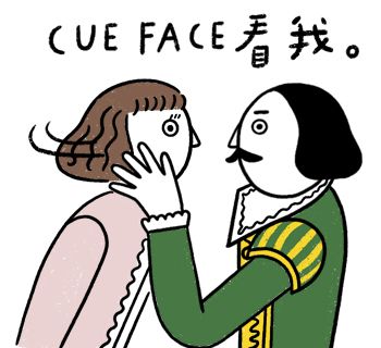 這麼撩人的動作,難道莎士比亞突然化身成韓劇歐霸了嗎?CUE FACE原先在劇場裡的意思,是指當演員不在場時,讓替代就定位的工作人員上場,唸起來也有點像是「Cute Face(可愛臉)」,想要讓對方專心在你的話題上,也可以使用這張貼圖。