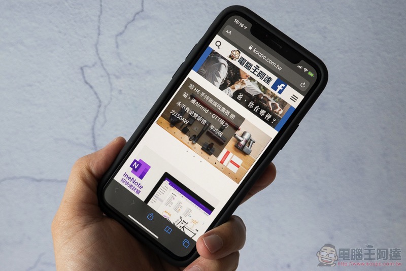 背殼上的電池則是可以為 iPhone 11 系列提供 50% 額外的電量,隨之而來的則是會稍微重些,還有比較厚,所以有在用汽車導航架或是手機腳架的話不見得能卡上 -- 好在這殼也算好拆裝的,所以真的要上手機架還是可以快速先拆下來使用的: