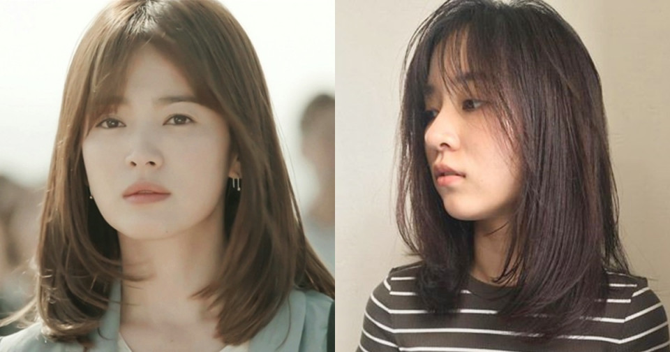 第一款就是宋慧喬在《太陽的後裔》中大夯的八字瀏海+羽毛剪中長髮!沒錯~這款髮型最近又回到韓國的髮型趨勢啦!除了能夠瘦臉、修飾額頭跟顴骨的八字瀏海之外,這款髮型的重點在於耳側兩旁羽毛般的髮尾,且長度剛好落在鎖骨及肩處,加上微微向內彎的弧度,讓他非常修飾下顎邊緣,特別適合方臉、脖子粗的人減!