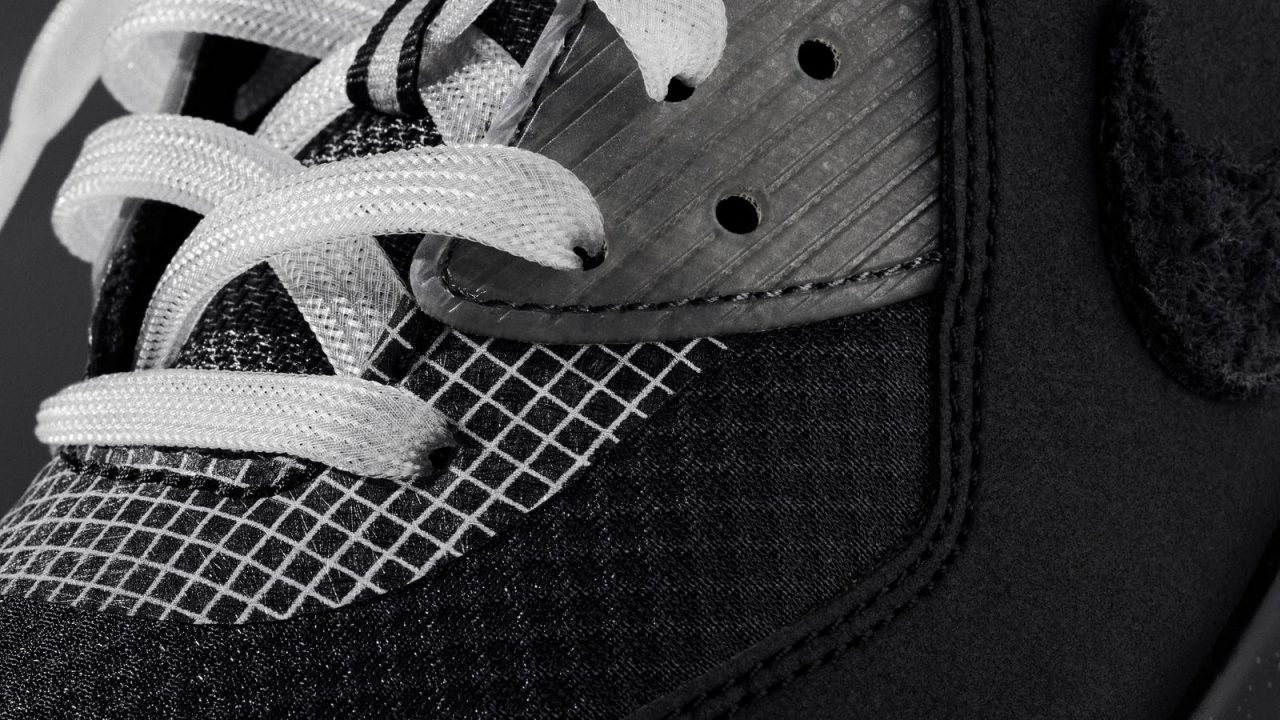 Undefeated x Nike Air Max 90 共推出了藍、黑兩款配色,以「科技復刻」為主軸設計,意即在 Air Max 90 選用帶有未來感的配色以及材質,因此可以見到網眼布、麂皮、潑墨中底、透明膠底等材質組成,鞋面 Swoosh 刻意使用舊化處理;特別的是,鞋後跟還加入拉環配置。如果覺得本作看起來與過去的 Air Max 90 有一點不同的話,應該不是錯覺。因為 Nike 官方表示,材料重組後的 Air Max 90 取消了側面的 Air Max 標誌、拉長 Swoosh,鞋舌、鞋跟填充物也減少,讓鞋款整體更簡潔俐落,增添時尚感。