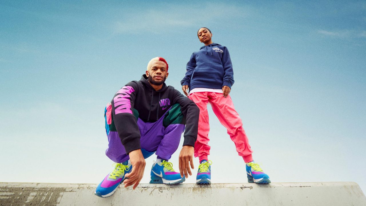 系列黑、藍兩色也分別有自己的設計靈感,黑色版的 Undefeated x Nike Air Max 90 靈感源自於 1980 年代末期到 1990 年代中旬,取用了黃金跑鞋年代以及紐約街頭流行的運動風格為配色;藍色版的 Undefeated x Nike Air Max 90 則是在致敬 Nike ACG 支線。