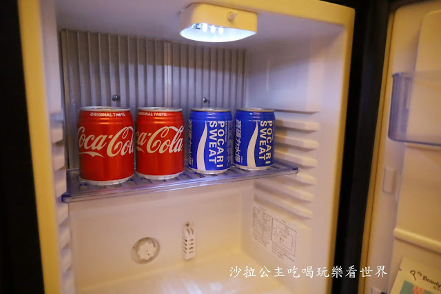 冰箱內野放了面膜、寶礦力,泡湯的時候可以補充水份,連臉部也要補充水份保濕一下,真是太貼心了