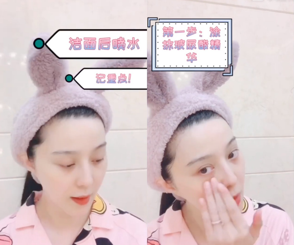 稍微擦拭掉面膜精華,補噴一些爽膚水後,范冰冰會先擦上眼部精華打底再補水,最後用眼霜鎖水,讓眼周細紋徹底OUT!而保養老師建議,如果比較容易長脂肪瘤、小顆粒的人,除了可以選擇較好吸收的水精華質地來做眼部保養,也能適度減法,眼部精華與眼霜二擇一即可。