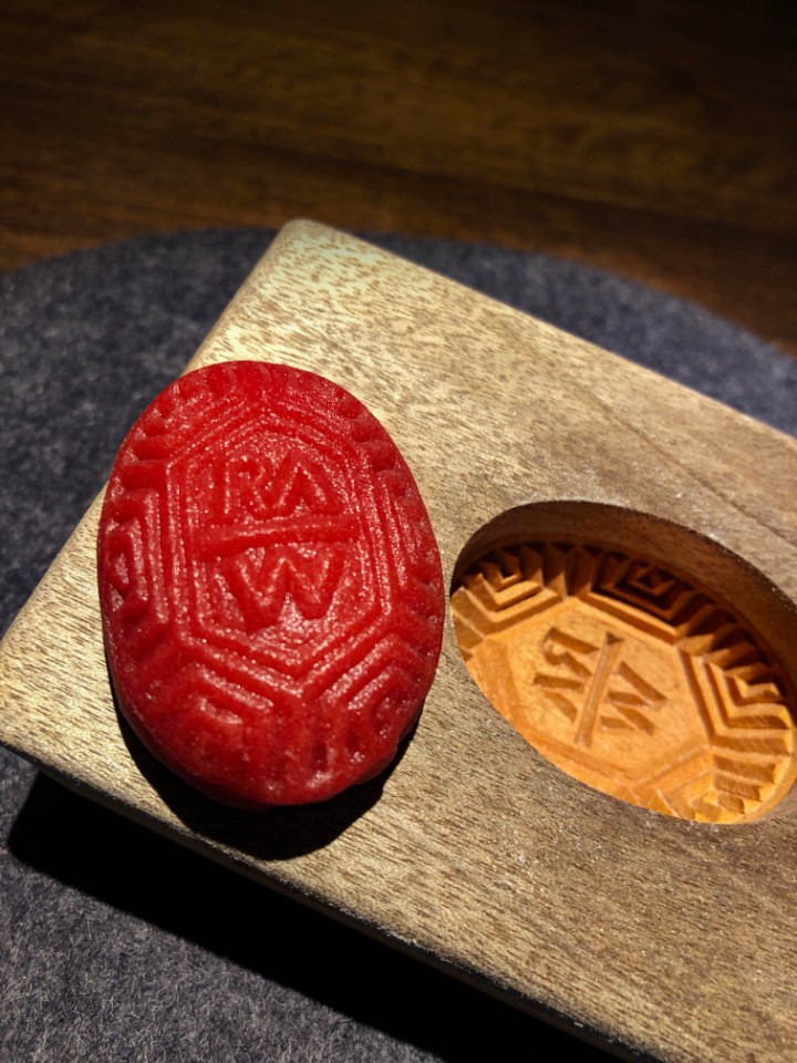 RAW去年發起了第一波「春天吃春卷」運動,延續「捲起春天,留住青春」的意涵,海頭皮/金山寺味噌/山葵,口感如海蜇皮般的鮭魚頭軟骨、薏仁、金山寺味噌和山葵調味,再用香氣十足的新鮮山葵葉取代包裹的麵皮,清爽也降低了身體的負擔。而相同食材更用來製作出的富含膠質的山葵湯,表現春天氣候變化多端的意象。