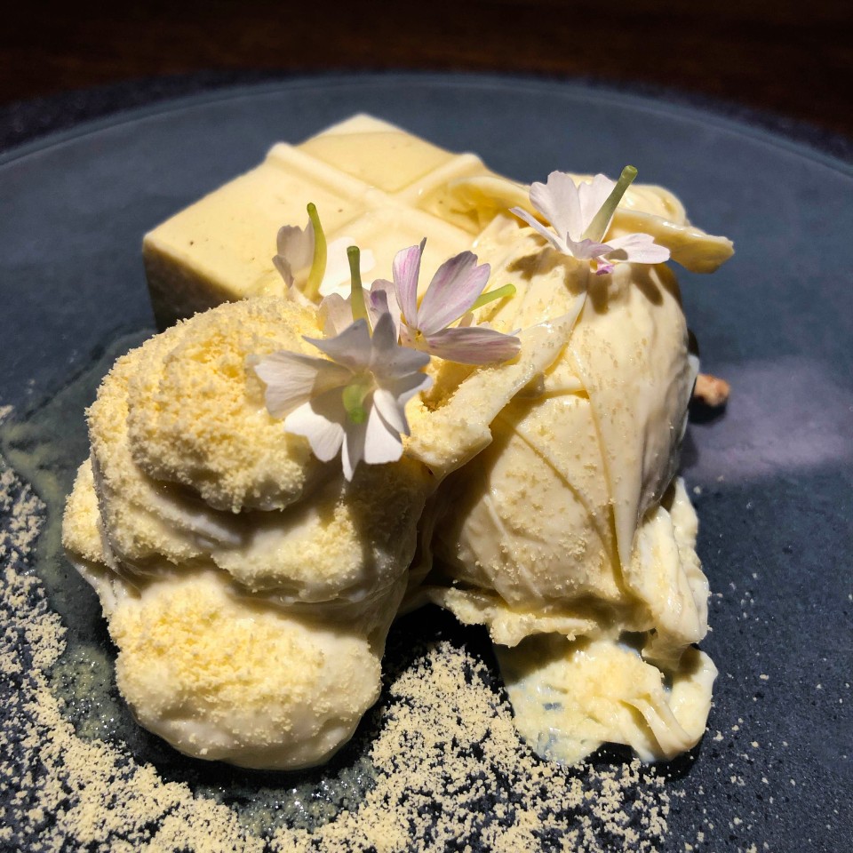 俗云春分吃春菜,娃娃芥菜/黑芝麻/松露使用春天才有的娃娃菜,帶著微苦及甘甜,用湯圓和松露奶油醬做成台版的「義式麵疙瘩Gnocchi」。黑芝麻、松露和胡桃的濃醇醬汁,仔細感受這些食材在奇異的組合竟蹦出了「太妃糖」的香氣。