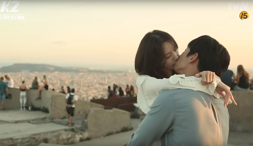 又是一部到西班牙拍攝的劇~小編好懷疑韓國是不是收了西班牙旅遊局的廣告費。《THE K2》一開始,池昌旭就在西班牙月台展現了一連串精彩打戲,成功救下潤娥,最後兩人也是重回最初相遇的西班牙,在美景中接吻。
