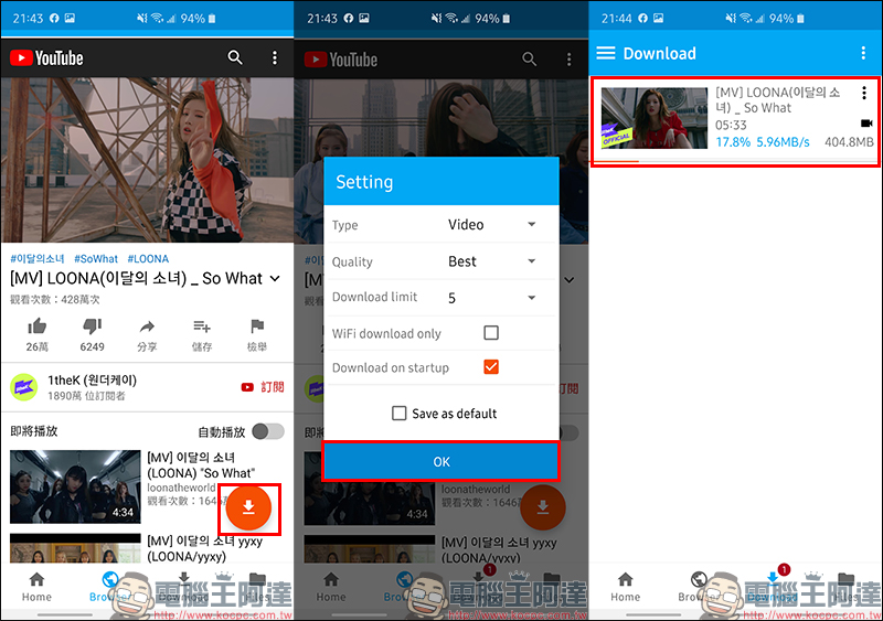 因此,筆者才會建議各位只要先在原本的平台複製影片連結,直接在 iTubeGo App 的網址欄位貼上,接著只要點選畫面中的「下載」按鈕、確認下載設定就能開始下載囉!
