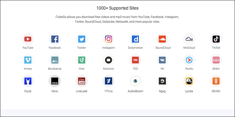 iTubeGo 支援目前常見的像是 YouTube 、 Facebook、 Twitter、Instagram、Vimeo、抖音等超過 1,000 個網站影片下載,幾乎涵蓋目前絕大多數影音網站(就連某 P**nh*b 影音網站的影片也能下載,至於其他網站就請各位自行嘗試囉!):